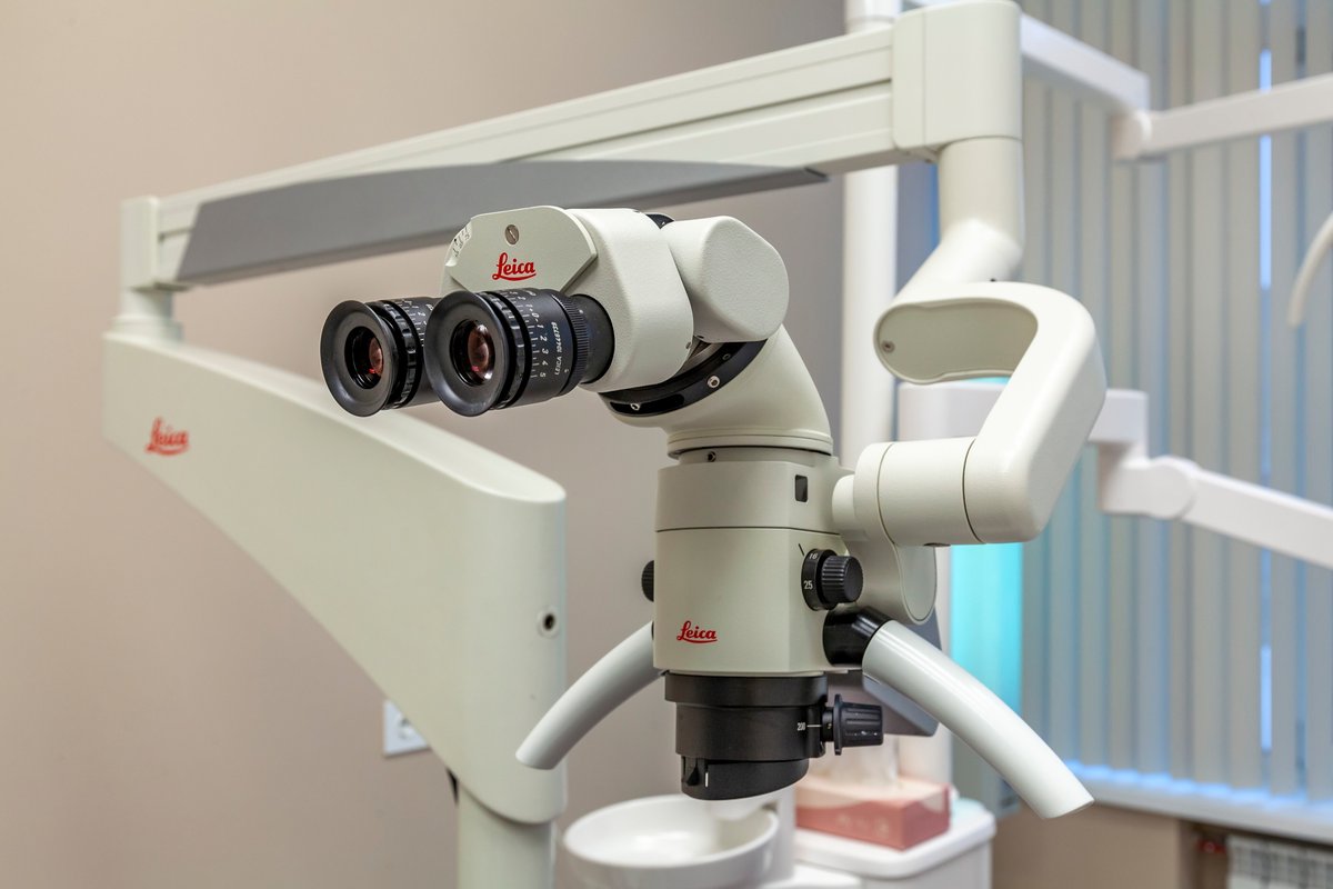 Врач оказывает полный спектр терапевтических услуг, включая работу с микроскопом: